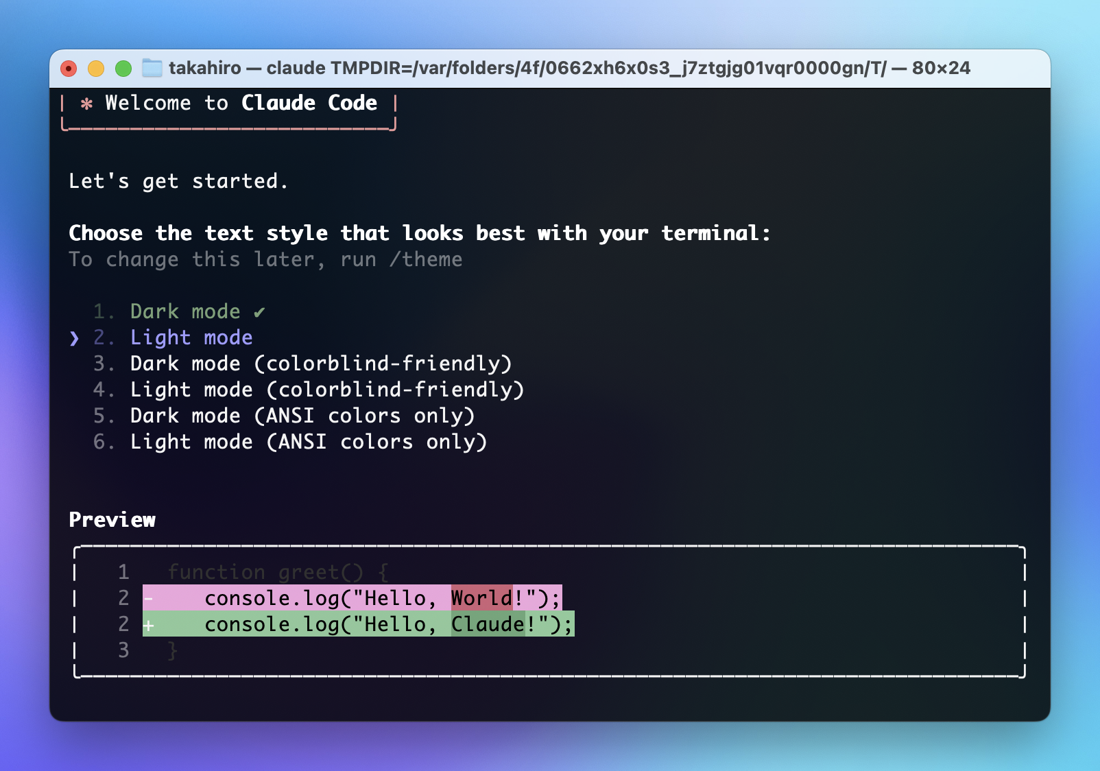 - claude を実行する