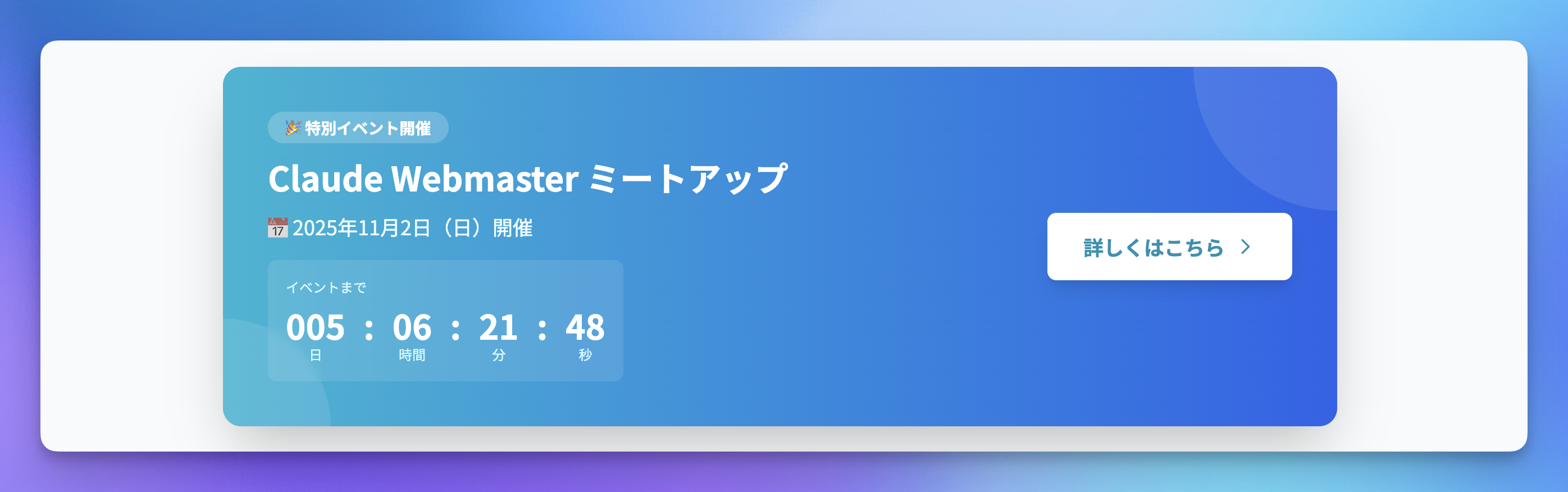 - 2025年11月2日 に開催のイベント(Claude Webmaster ミートアップ)